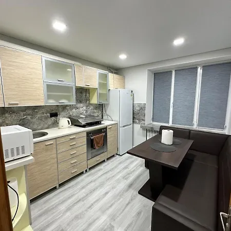 Lägenheten Уютная Квартира В Тихом Районе Озеро В 10 Минутах har ett komplett kök, samt bekvämligheter som luftkonditionering och tvättmaskin. För ökad komfort erbjuds en separat toalett på boendet. Hårtorkar finns också tillgängliga.